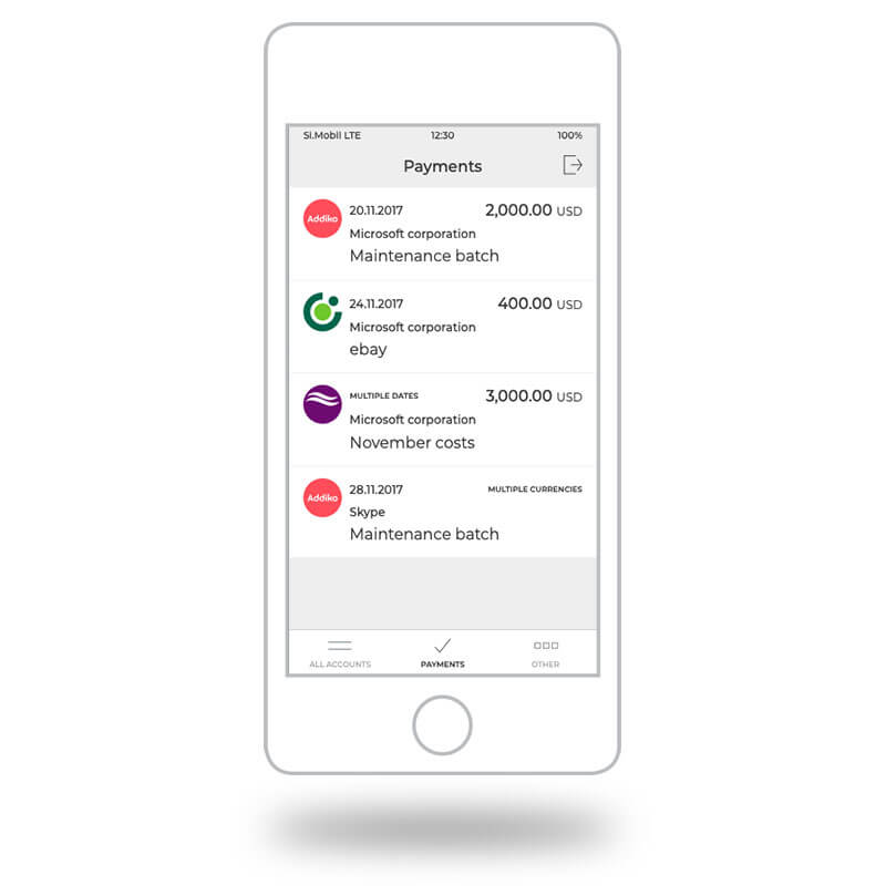 Halcom MultiPay korporativnim korisnicima omogućuje ažuriranje podataka o njihovim financijama bilo gdje i bilo kada. Pruža sveobuhvatan pregled stanja i transakcija na svim računima i u više banaka. Sve to u jednoj aplikaciji, na računaru, tabletu ili mobilnom telefonu.