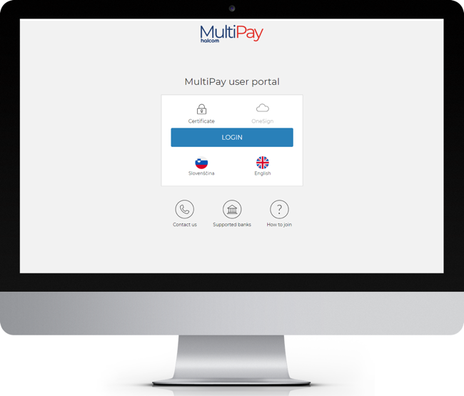 | 1 | Enter the Halcom MultiPay web app or access it through the Halcom MultiPay user portal by clicking the OPEN MULTIPAY button. |